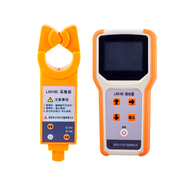 该仪器是我公司研发的一款针对小电流系统(主要针对10kV)架空线路接地故障停电后进行接地点精确快速定位的检测仪器。信号主机向架空线路注入0.5Hz超低频直流脉动信号,采集器采集线路中电流波形,接收器接收采集器通过无线射频模块发出的测试数据,并显示电流波形及故障位置。检测方法为二分法,快速确定接地故障点,减少盲目性,缩短故障查找时间